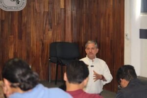 Fernández Fuentes presentó su libro “Fundamentos para la Ciencia de la Administración Pública en el Siglo XXI”, donde analiza cómo el conocimiento científico generado en la academia puede traducirse en mejores prácticas gubernamentales. Su exposición despertó el interés de los estudiantes, quienes plantearon preguntas y reflexionaron sobre el impacto de la teoría en la administración pública.